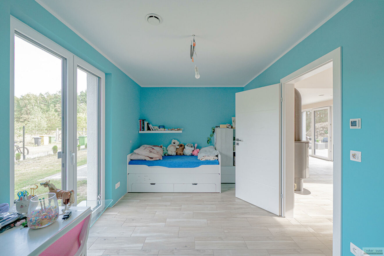 -wyjście do ogrodu z salonu oraz dwóch sypialni.