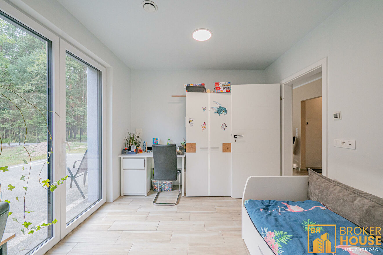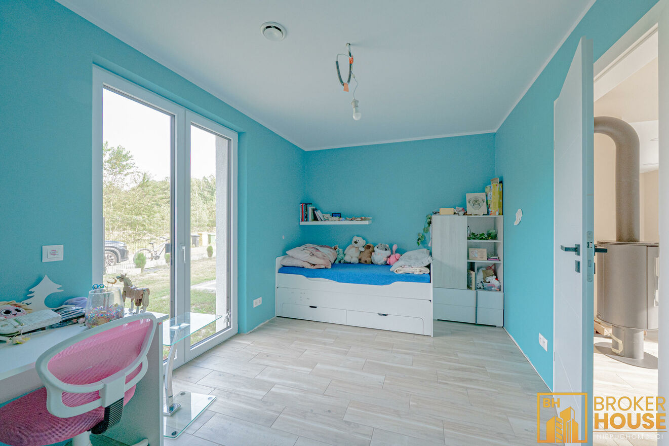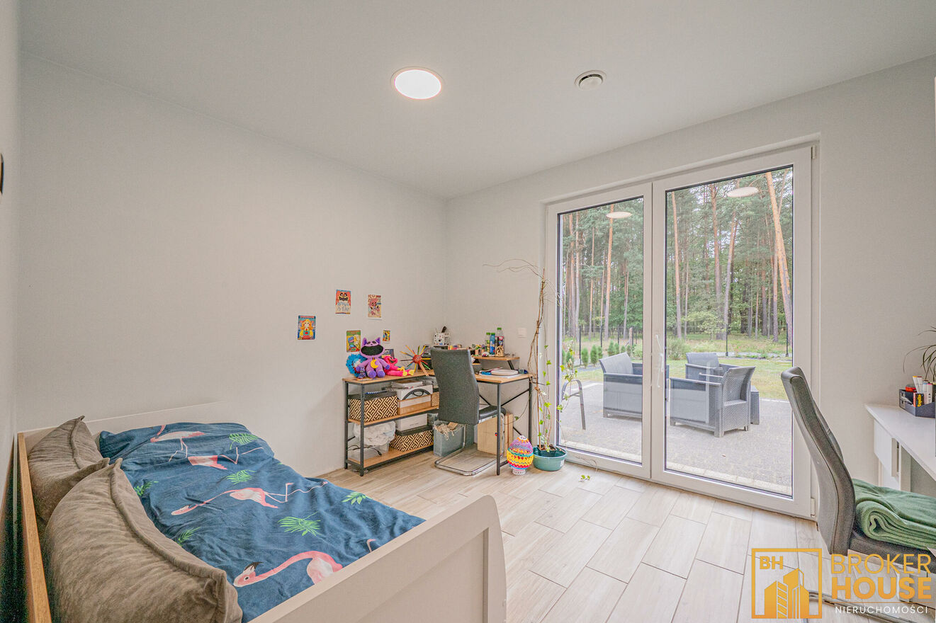 -wyjście do ogrodu z salonu oraz dwóch sypialni.